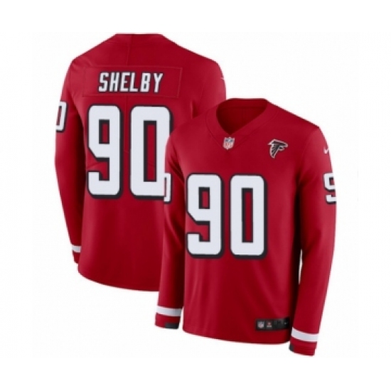 Youth Nike Atlanta Falcons #90 Derrick Shelby Limited Red Therma Long Sleeve NFL Jersey