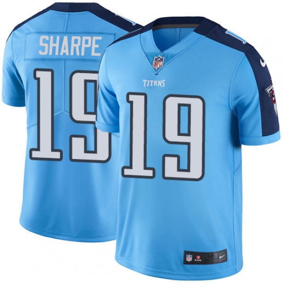 Home>NFL>Tennessee Titans>Tajae Sharpe>Youth Nike Tennessee Titans #19 Tajae Sharpe Limited Light Blue Rush Vapor Untouchable NFL Jersey