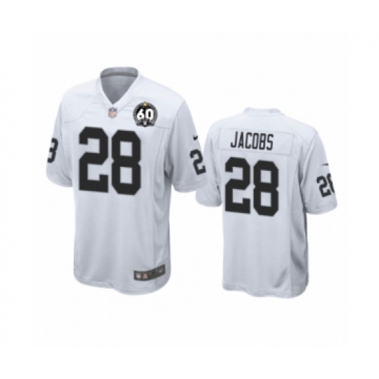 >Youth Oakland Raiders #28 Josh Jacobs Game 60th Anniversary White Football Jersey