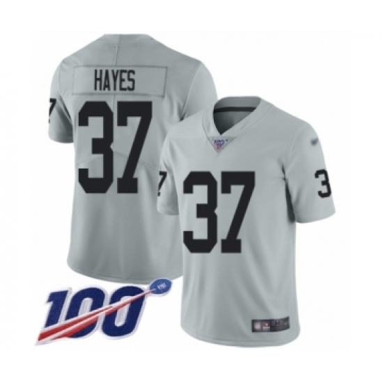 Men's Oakland Raiders #37 Lester Hayes Limited Silver Inverted Legend 100th Season Football Jersey