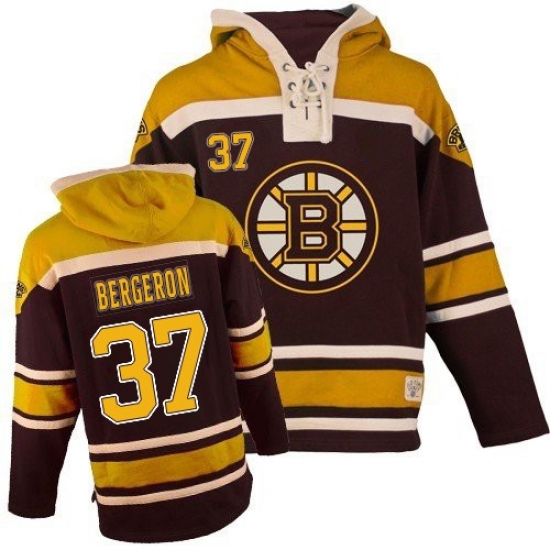 Youth Old Time Hockey Boston Bruins #37 Patrice Bergeron Authentic Black Sawyer Hooded Sweatshirt NHL Jersey
