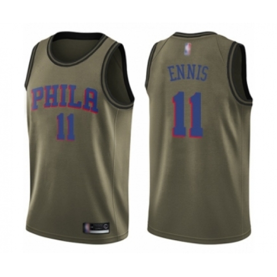 Youth Philadelphia 76ers #11 James Ennis Swingman Green Salute to Service Basketball Jersey