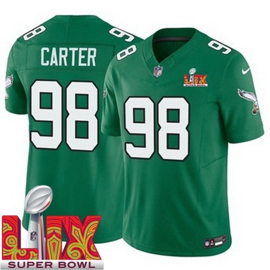 Women Philadelphia Eagles Jalen Carter #98 Kelly Green 2024 2025 Super Bowl LIX F U S E Stitched NFL Jersey