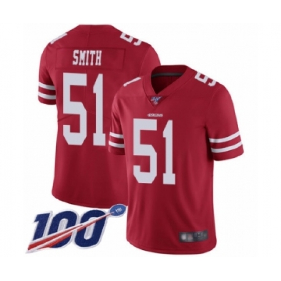 >Youth San Francisco 49ers #51 Malcolm Smith Red Team Color Vapor Untouchable Limited Player 100th Season Football Jersey
