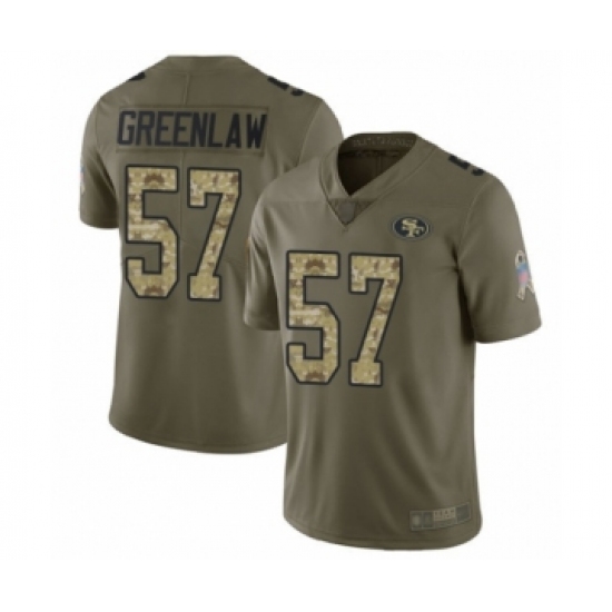 >Youth San Francisco 49ers #57 Dre Greenlaw Limited Olive Camo 2017 Salute to Service Football Jersey