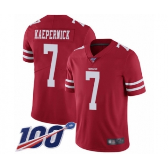 >Youth San Francisco 49ers #7 Colin Kaepernick Red Team Color Vapor Untouchable Limited Player 100th Season Football Jersey