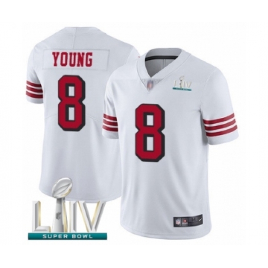 >Youth San Francisco 49ers #8 Steve Young Limited White Rush Vapor Untouchable Super Bowl LIV Bound Football Jersey