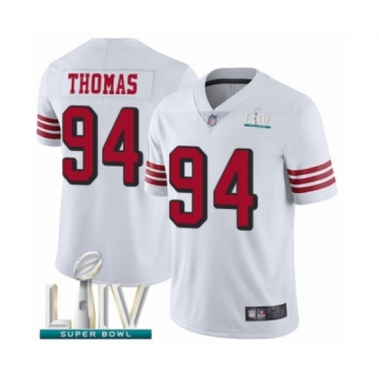 >Youth San Francisco 49ers #94 Solomon Thomas Limited White Rush Vapor Untouchable Super Bowl LIV Bound Football Jersey