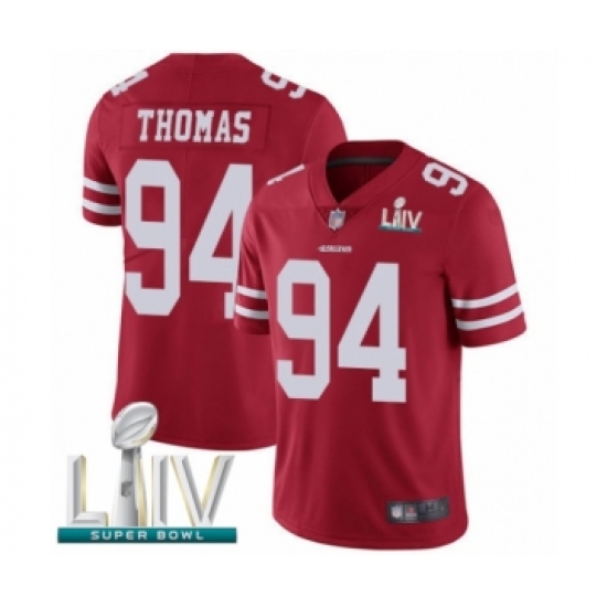 Men's San Francisco 49ers #94 Solomon Thomas Red Team Color Vapor Untouchable Limited Player Super Bowl LIV Bound Football Jersey