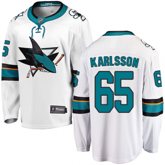 >Youth San Jose Sharks #65 Erik Karlsson Fanatics Branded White Away Breakaway NHL Jersey