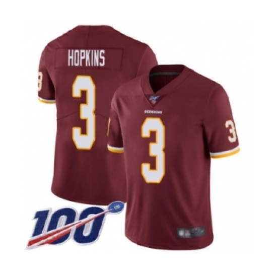 >Youth Washington Redskins #3 Dustin Hopkins Burgundy Red Team Color Vapor Untouchable Limited Player 100th Season Football Jersey
