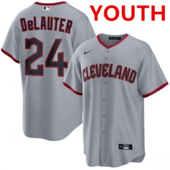 Youth cleveland guardians #24 chase delauter gray cool base limited stitched baseball jersey